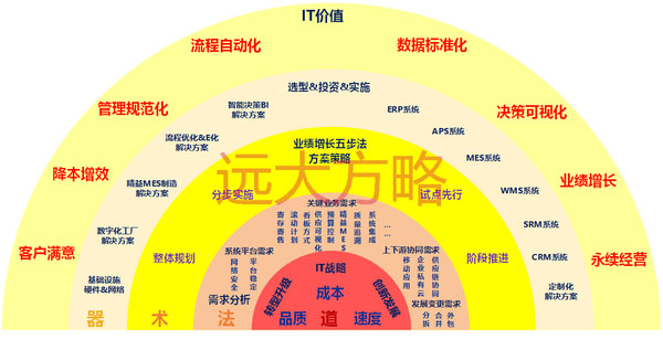 遠(yuǎn)大方略智能制造信息化運(yùn)用管理咨詢作為實(shí)施系統(tǒng)的指導(dǎo)思想,軟件為核心技術(shù),為中國中小實(shí)體企業(yè)提供量身定制的行業(yè)解決方案,實(shí)現(xiàn)企業(yè)的策略:創(chuàng)新、速度、效率、品質(zhì)、成本