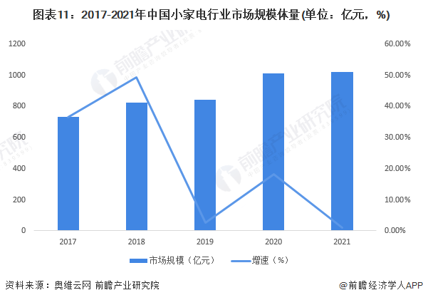 3、中國(guó)小家電企業(yè)市場(chǎng)規(guī)模降速上漲