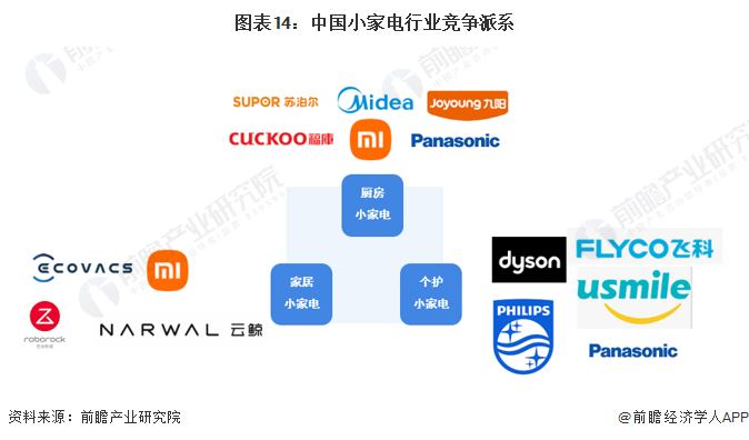 根據(jù)各市場(chǎng)主體主營(yíng)產(chǎn)品的類(lèi)型差異,中國(guó)小家電行業(yè)可以劃分為三個(gè)競(jìng)爭(zhēng)派系。廚房小家電領(lǐng)域的主要參與者有美的集團(tuán)、蘇泊爾、九陽(yáng)股份、松下電器等;家居小家電產(chǎn)品主要包括掃地機(jī)器人、洗地機(jī)、無(wú)線吸塵器等產(chǎn)品,參與者包括科沃斯、石頭科技、小米科技、云鯨等品牌;個(gè)護(hù)小家電產(chǎn)品主要包括電吹風(fēng)、電動(dòng)剃須刀、電動(dòng)牙刷等產(chǎn)品,市場(chǎng)參與者包括戴森、飛利浦、飛科電器、松下電器、USMILE等。