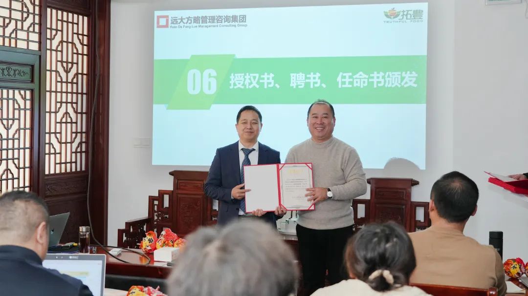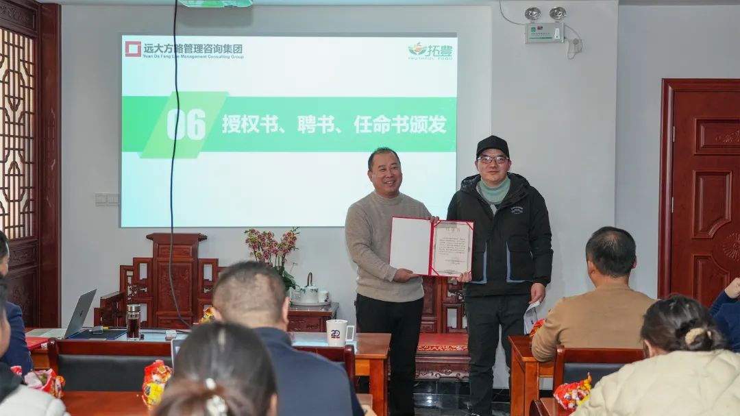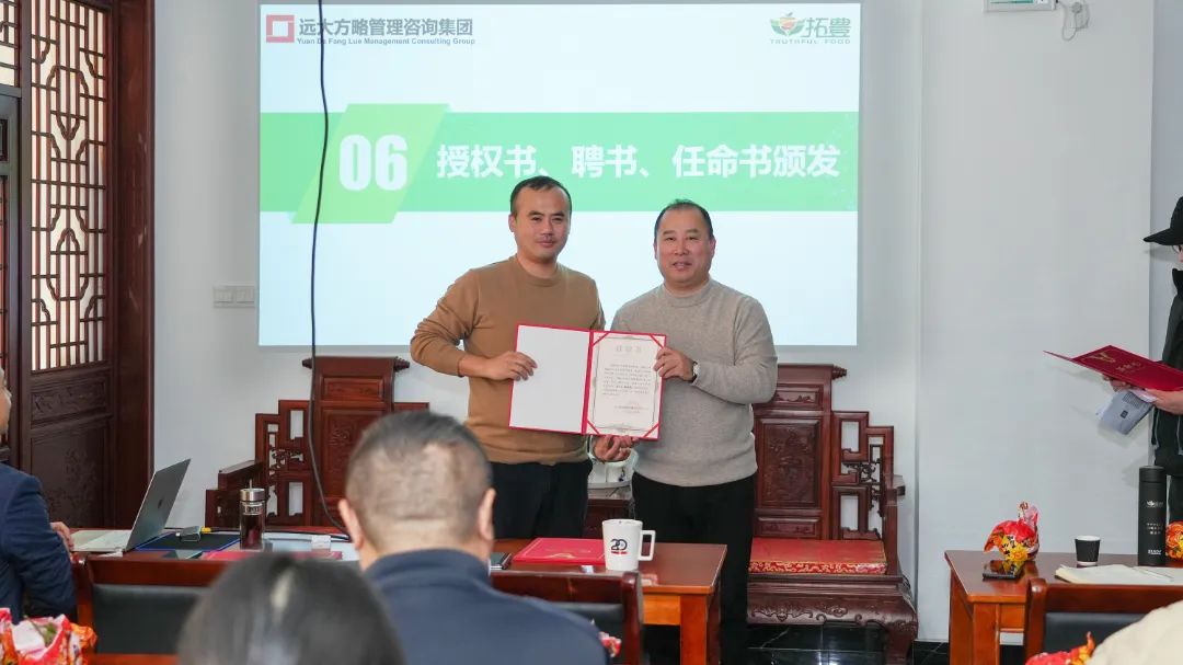 為了進(jìn)一步加強項目組的權(quán)威性和執(zhí)行力,拓豐樸道領(lǐng)導(dǎo)為遠(yuǎn)大方略項目組頒發(fā)了授權(quán)書,授予老師項目管理權(quán),同時,還為拓豐樸道項目組成員頒發(fā)任命書,明確了各成員的職責(zé)與使命,進(jìn)一步強化了項目團(tuán)隊的執(zhí)行力和領(lǐng)導(dǎo)力,為此次項目改善提供了有力的組織保障。