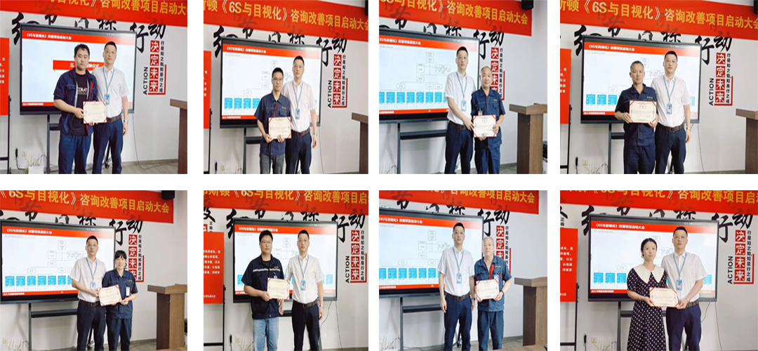 為促進項目的有效落地,明確各崗位職責,強化責任意識,會上張總為遠大方略項目組老師頒發聘書,為各改善小組成員頒發任命書。
